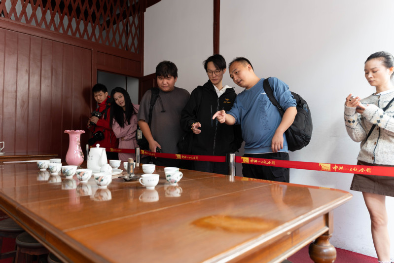 纪念馆展厅内,从泛黄的《新青年》杂志、第一版《共产党宣言》中文全译本,到会议场景的逼真复原,再到运用多媒体技术再现的“开天辟地大事变”历史时刻……每一件文物都是一部鲜活的历史教科书,每一段影像都是一曲激昂的英雄赞歌。智能工程学院的师生们或驻足凝视,或低声交流,或认真记录,完全沉浸在那段先驱者们为寻求救国真理而上下求索的峥嵘岁月里。